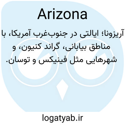 آریزونا؛ ایالتی در جنوب‌غرب آمریکا، با مناطق بیابانی، گراند کنیون، و شهرهایی مثل فینیکس و توسان.