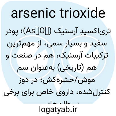 📌 پودری سفید، بیمزه، بیشکل، کمی محلول در آب و سمی، با فرمول شیمیایی As2O3، که عمدتاً در ساخت رنگدانهها و شیشه و به عنوان حشرهکش یا علفکش استفاده میشود؛ اسید آرسنیک.