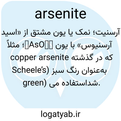 آرسنیت؛ نمک یا یون مشتق از «اسید آرسنیوس» با یون AsO₃³⁻؛ مثلاً copper arsenite که در گذشته به‌عنوان رنگ سبز (Scheele’s green) استفاده می‌شد.
