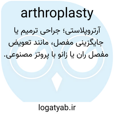 آرتروپلاستی؛ جراحی ترمیم یا جایگزینی مفصل، مانند تعویض مفصل ران یا زانو با پروتز مصنوعی.