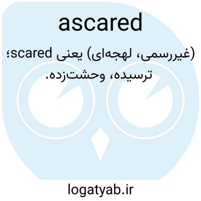 (غیررسمی، لهجه‌ای) یعنی scared؛ ترسیده، وحشت‌زده.