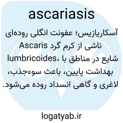آسکاریازیس؛ عفونت انگلی روده‌ای ناشی از کرم گرد Ascaris lumbricoides، شایع در مناطق با بهداشت پایین، باعث سوءجذب، لاغری و گاهی انسداد روده می‌شود.