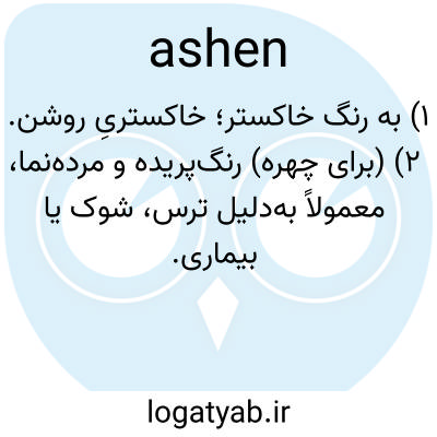 ۱) به رنگ خاکستر؛ خاکستریِ روشن. ۲) (برای چهره) رنگ‌پریده و مرده‌نما، معمولاً به‌دلیل ترس، شوک یا بیماری.