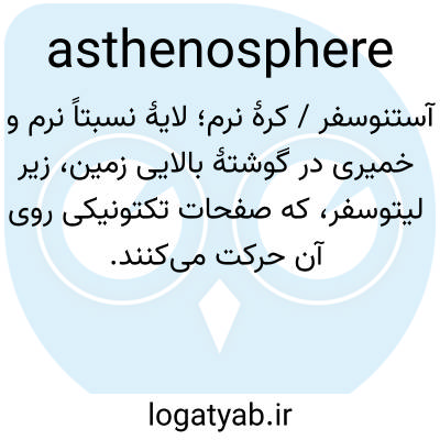 📌 ناحیه زیر لیتوسفر، که ضخامت آن به طور متفاوتی از پنجاه تا چند صد مایل (هشتاد و پنج تا چند صد کیلومتر) تخمین زده میشود، و در آن سنگ نسبت به سنگهای بالا و پایین، سفتی کمتری دارد، اما به اندازه کافی سفت و سخت است تا امواج لرزهای عرضی را منتقل کند.