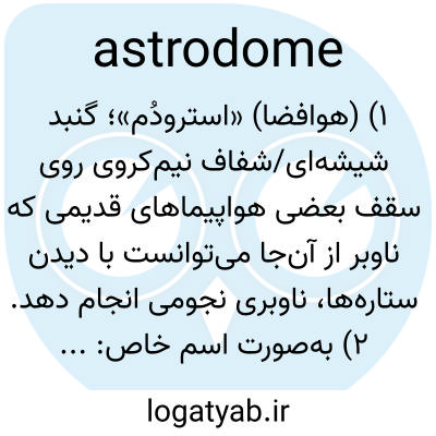 ۱) (هوافضا) «استرودُم»؛ گنبد شیشه‌ای/شفاف نیم‌کروی روی سقف بعضی هواپیماهای قدیمی که ناوبر از آن‌جا می‌توانست با دیدن ستاره‌ها، ناوبری نجومی انجام دهد. ۲) به‌صورت اسم خاص: «Houston Astrodome»؛ ورزشگاه سرپوشیدهٔ مشهور در هیوستون، تگزاس، معروف به «هشتمین شگفتی جهان».