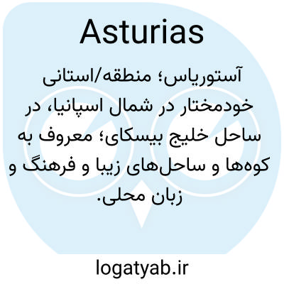 آستوریاس؛ منطقه/استانی خودمختار در شمال اسپانیا، در ساحل خلیج بیسکای؛ معروف به کوه‌ها و ساحل‌های زیبا و فرهنگ و زبان محلی.