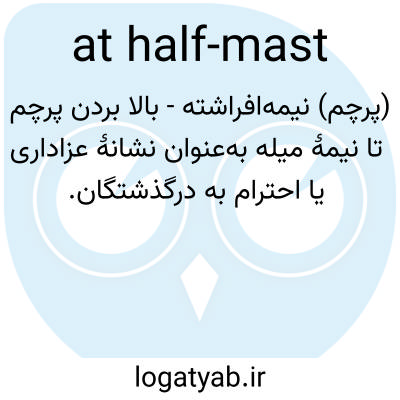 📌 نیمه بالا یا پایین، مانند ناقوسهای کلیسا تمام روز به صدا درمیآمدند و پرچمها نیمهافراشته بودند. این اصطلاح به قرار دادن پرچم در نیمه بالای دکل یا میله پرچم کشتی اشاره دارد، عملی که به عنوان نشانهای از احترام به شخصی که فوت کرده یا در دریا، به عنوان علامت اضطراری استفاده میشود. گاهی اوقات این اصطلاح به اشیاء دیگر نیز منتقل میشود، مانند شلوار تام در حالی که در زمین بازی میدوید، نیمهافراشته بود، یا دم توله سگ نیمهافراشته بود. [نیمه اول دهه ۱۶۰۰]