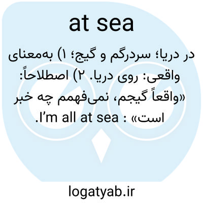 📌 سوار بر کشتی، روی اقیانوس، مانند عبارت «ظرف چند ساعت کشتی به دریا خواهد رفت». در طول جنگ جهانی دوم، یک گوینده خبر مشهور آمریکایی برنامههای رادیویی خود را خطاب به شنوندگان در همه جا، از جمله «تمام کشتیهای در دریا» پخش میکرد. [دهه 1300]