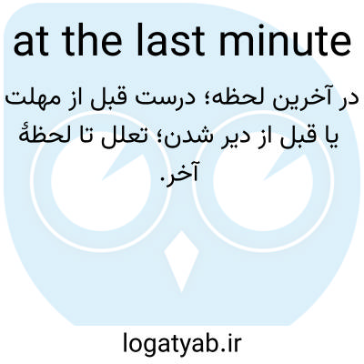 📌 در آخرین لحظه یا فرصت ممکن. برای مثال، جیم نتوانست رزرو کند زیرا در آخرین لحظه تماس گرفته بود. همچنین ببینید: حداکثر؛ ساعت یازدهم.