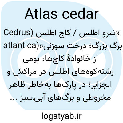 «سَرو اطلس / کاج اطلس (Cedrus atlantica)»؛ درخت سوزنی‌برگ بزرگ از خانوادهٔ کاج‌ها، بومی رشته‌کوه‌های اطلس در مراکش و الجزایر؛ در پارک‌ها به‌خاطر ظاهر مخروطی و برگ‌های آبی‌ـ‌سبز کاشته می‌شود، ولی در زیستگاه طبیعی‌اش گونه‌ای در خطر است.
