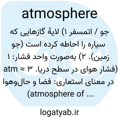 📌 یک واحد قراردادی فشار، فشار عادی هوا در سطح دریا، حدود ۱۴.۷ پوند بر اینچ مربع (۱۰۱.۳ کیلوپاسکال)، برابر با فشار اعمال شده توسط ستونی از جیوه به ارتفاع ۲۹.۹۲ اینچ (۷۶۰ میلیمتر). اتمسفر.
