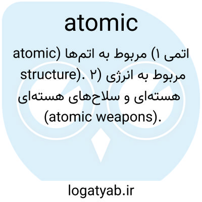 📌 مربوط به، ناشی از، یا استفاده از اتم، انرژی اتمی، یا بمب اتمی.
