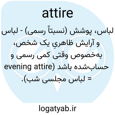 لباس، پوشش (نسبتاً رسمی) - لباس و آرایش ظاهریِ یک شخص، به‌خصوص وقتی کمی رسمی و حساب‌شده باشد (evening attire = لباس مجلسی شب).