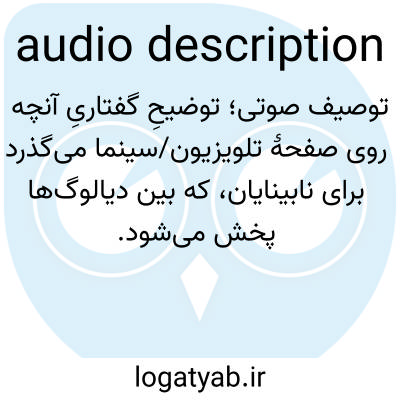 📌 تسهیلاتی که برای افراد کمبینا فراهم شده و در آن یک فیلم، برنامه تلویزیونی یا نمایش از طریق فناوری صوتی توصیف میشود