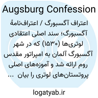 📌 بیانیه باورها و آموزههای لوتریها، که توسط ملانشتون تدوین و توسط شاهزادگان لوتری تأیید شد، که در سال ۱۵۳۰ در دیت آوگسبورگ ارائه شد و به اعتقادنامه اصلی کلیسای لوتری تبدیل شد.
