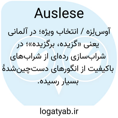 📌 (اغلب با حروف کوچک)، شرابی که در آلمان از انگورهای رسیده و با دقت انتخاب شده تهیه میشود.