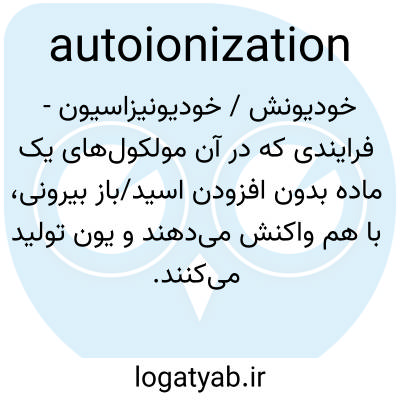 خود‌یونش / خودیونیزاسیون - فرایندی که در آن مولکول‌های یک ماده بدون افزودن اسید/باز بیرونی، با هم واکنش می‌دهند و یون تولید می‌کنند.