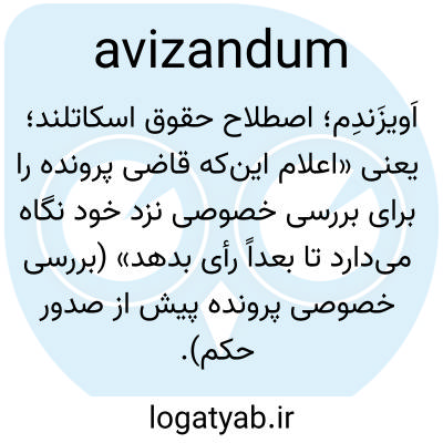 اَویزَندِم؛ اصطلاح حقوق اسکاتلند؛ یعنی «اعلام این‌که قاضی پرونده را برای بررسی خصوصی نزد خود نگاه می‌دارد تا بعداً رأی بدهد» (بررسی خصوصی پرونده پیش از صدور حکم).