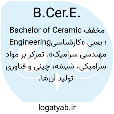 مخفف Bachelor of Ceramic Engineering؛ یعنی «کارشناسی مهندسی سرامیک». تمرکز بر مواد سرامیکی، شیشه، چینی و فناوری تولید آن‌ها.