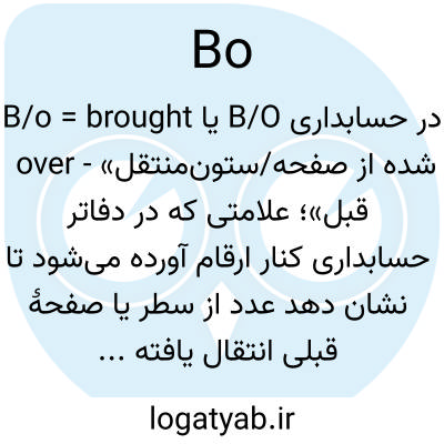 در حسابداری B/O یا B/o = brought over - «منتقل‌شده از صفحه/ستون قبل»؛ علامتی که در دفاتر حسابداری کنار ارقام آورده می‌شود تا نشان دهد عدد از سطر یا صفحهٔ قبلی انتقال یافته است. گاهی در بورس هم به معنی «buyer’s option» (اختیار خریدار) می‌آید.