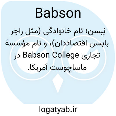 بَبسن؛ نام خانوادگی (مثل راجر بابسن اقتصاددان)، و نام مؤسسهٔ تجاری Babson College در ماساچوست آمریکا.