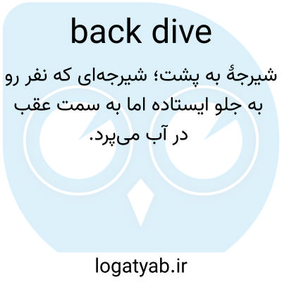 📌 شیرجهای که در آن شیرجهرو روی تخته فنر میایستد و پشتش به آب است و به بالا میپرد، و برای فرود آمدن به عقب قوس میدهد، یا با پاهایش رو به تخته فنر فرود میآید یا با سر که از تخته فنر دور است.