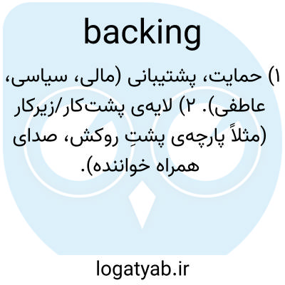 ۱) حمایت، پشتیبانی (مالی، سیاسی، عاطفی). ۲) لایه‌ی پشت‌کار/زیرکار (مثلاً پارچه‌ی پشتِ روکش، صدای همراه خواننده).