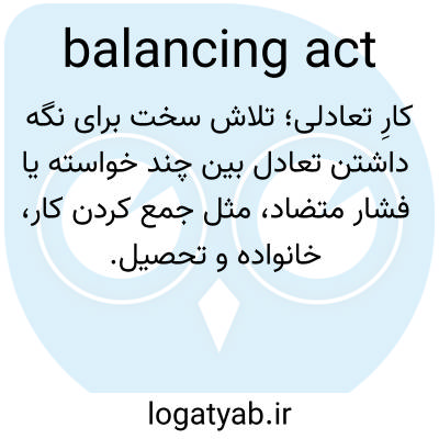 کارِ تعادلی؛ تلاش سخت برای نگه داشتن تعادل بین چند خواسته یا فشار متضاد، مثل جمع کردن کار، خانواده و تحصیل.