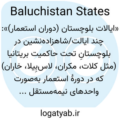 «ایالات بلوچستان (دوران استعمار)»: چند ایالت/شاهزاده‌نشین در بلوچستانِ تحت حاکمیت بریتانیا (مثل کلات، مکران، لاس‌بِیلا، خاران) که در دورهٔ استعمار به‌صورت واحدهای نیمه‌مستقل اداره می‌شدند.