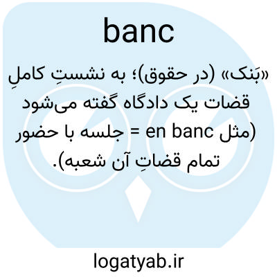 «بَنک» (در حقوق)؛ به نشستِ کاملِ قضات یک دادگاه گفته می‌شود (مثل en banc = جلسه با حضور تمام قضاتِ آن شعبه).