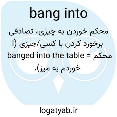 📌 با سر و صدا به چیزی برخورد کردن، با چیزی برخورد کردن، مثل فیلم بیل، آدم دست و پا چلفتی، همیشه داشت به مبلمان میکوبید. [اوایل دهه ۱۷۰۰]