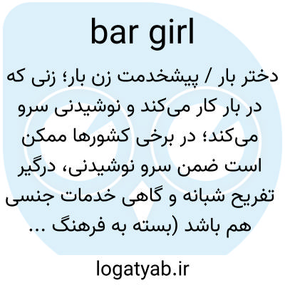 دختر بار / پیشخدمت زن بار؛ زنی که در بار کار می‌کند و نوشیدنی سرو می‌کند؛ در برخی کشورها ممکن است ضمن سرو نوشیدنی، درگیر تفریح شبانه و گاهی خدمات جنسی هم باشد (بسته به فرهنگ و زمینه).