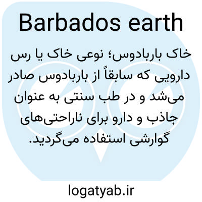 خاک باربادوس؛ نوعی خاک یا رس دارویی که سابقاً از باربادوس صادر می‌شد و در طب سنتی به عنوان جاذب و دارو برای ناراحتی‌های گوارشی استفاده می‌گردید.