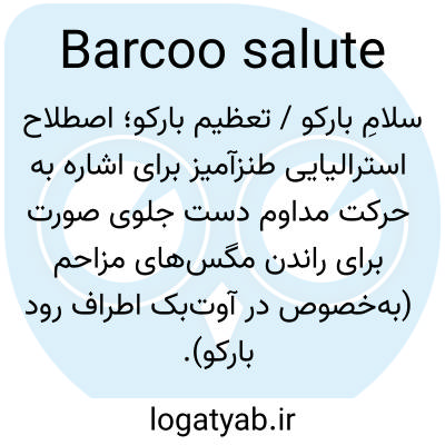 سلامِ بارکو / تعظیم بارکو؛ اصطلاح استرالیایی طنزآمیز برای اشاره به حرکت مداوم دست جلوی صورت برای راندن مگس‌های مزاحم (به‌خصوص در آوت‌بک اطراف رود بارکو).