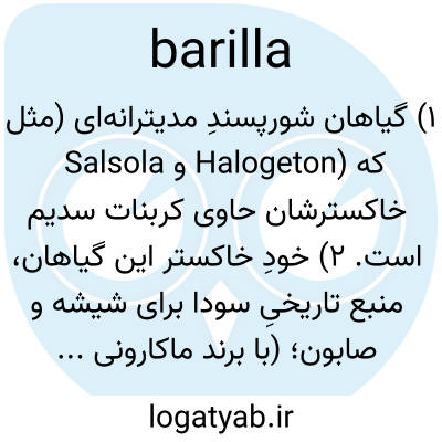📌 هر یک از دو گیاه شور اروپایی، Salsola kali یا S. soda، که خاکستر آنها کربنات ناخالص سودا تولید میکند.