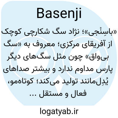 📌 یکی از نژادهای سگ آفریقایی با پوششی به رنگ بلوطی با نوکهای سفید و دمی فر که عمدتاً با ناتوانی در پارس کردن مشخص میشود.