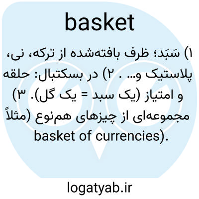 ۱) سَبَد؛ ظرف بافته‌شده از ترکه، نی، پلاستیک و… . ۲) در بسکتبال: حلقه و امتیاز (یک سبد = یک گل). ۳) مجموعه‌ای از چیزهای هم‌نوع (مثلاً basket of currencies).
