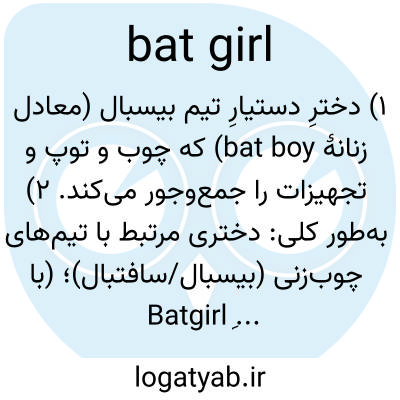 📌 دختر یا زن جوانی که از چوبهای بیسبال و گاهی اوقات سایر تجهیزات یک تیم مراقبت میکند.