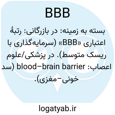 بسته به زمینه: در بازرگانی: رتبهٔ اعتباری «BBB» (سرمایه‌گذاری با ریسک متوسط). در پزشکی/علوم اعصاب: blood–brain barrier (سد خونی–مغزی).