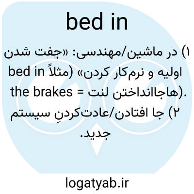 📌 (حرف اضافه) مهندسی، جفت کردن (قطعات) به طور دقیق یا جفت کردن (قطعات)، چه از طریق ماشینکاری و چه با استفاده، مانند جفت کردن یاتاقان با شفت آن