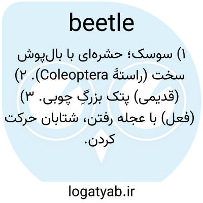 📌 هر یک از حشرات متعدد راسته Coleoptera، که با بالهای جلویی سخت و شاخی که بالهای پرواز غشایی را میپوشانند و محافظت میکنند، مشخص میشوند.