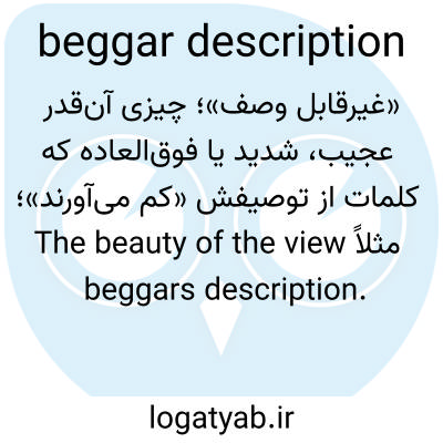 📌 هرگونه توصیف ممکن را نادیده بگیرید یا از آن پیشی بگیرید، همانطور که در ... صحنهآرایی آنقدر پیچیده بود که توصیف را گدایی میکرد. این اصطلاح، با اشاره به این ایده که کلمات برای انجام کاری به اندازه کافی نیستند، قبلاً توسط شکسپیر در آنتونی و کلئوپاترا (2:2) استفاده شده بود: «برای شخص خودش، همه توصیفها را گدایی میکرد.»