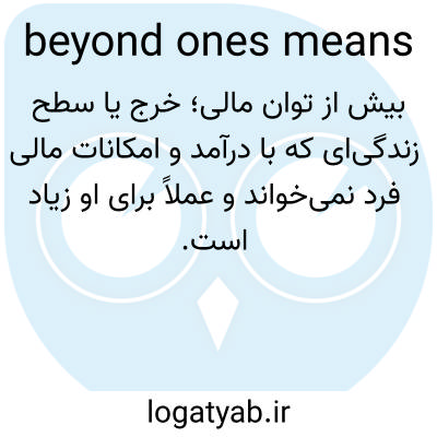 📌 برای کسی خیلی گران است، بیش از آنچه که بتواند از عهدهاش برآید. برای مثال، «تعطیلات دوم امسال بسیار فراتر از توان مالی ماست». اسم «به معنی» در اینجا به معنای «منابع در اختیار» است، کاربردی که از زمان شکسپیر رایج بوده است، مانند «مقیاس به ازای معیار» (2:2): «بگذارید او به اندازه نیازش، اما نه به اندازه اسراف، دارایی داشته باشد.» [اواخر دهه 1800]