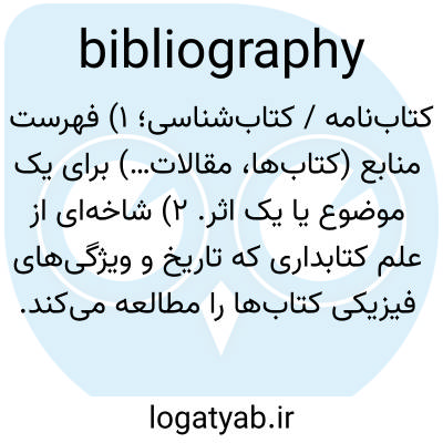 کتاب‌نامه / کتاب‌شناسی؛ ۱) فهرست منابع (کتاب‌ها، مقالات…) برای یک موضوع یا یک اثر. ۲) شاخه‌ای از علم کتابداری که تاریخ و ویژگی‌های فیزیکی کتاب‌ها را مطالعه می‌کند.