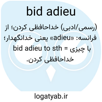 📌 خداحافظی کنید، بروید، مثلاً «وقت خوابم گذشته، پس به همه شما بدرود میگویم» یا «خوشحال میشوم که با این عصاها خداحافظی کنم». معادل فرانسوی «خداحافظی»، adieu است که به معنای «خداحافظی» است و بخشی از عبارت à dieu vous commant به معنای «شما را به خدا میسپارم» است. این عبارت که در دهه ۱۳۰۰ میلادی وارد زبان انگلیسی شد، اولین بار در کتاب «ترویلوس و کرسیدا» اثر چاسر (حدود ۱۳۸۵) ثبت شد. امروزه این عبارت کاملاً رسمی تلقی میشود، اگرچه به صورت طنز نیز به کار میرود.