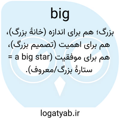 بزرگ؛ هم برای اندازه (خانهٔ بزرگ)، هم برای اهمیت (تصمیم بزرگ)، هم برای موفقیت (a big star = ستارهٔ بزرگ/معروف).