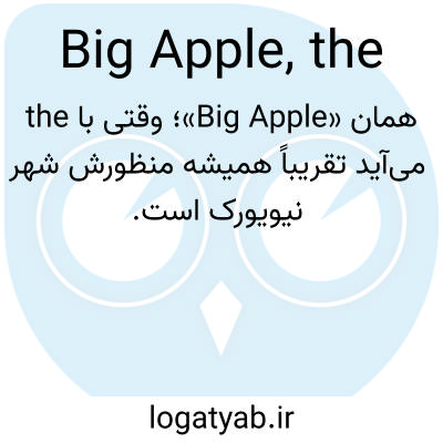 همان «Big Apple»؛ وقتی با the می‌آید تقریباً همیشه منظورش شهر نیویورک است.