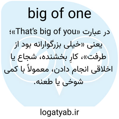 در عبارت «That’s big of you»؛ یعنی «خیلی بزرگوارانه بود از طرفت»، کارِ بخشنده، شجاع یا اخلاقی انجام دادن، معمولاً با کمی شوخی یا طعنه.