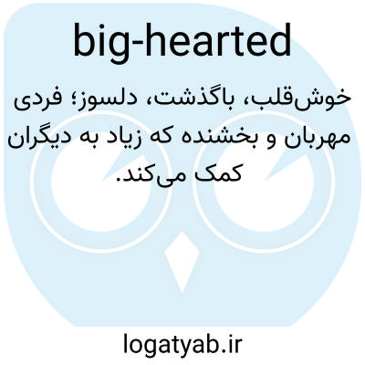 خوش‌قلب، باگذشت، دلسوز؛ فردی مهربان و بخشنده که زیاد به دیگران کمک می‌کند.