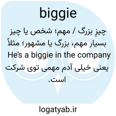 چیزِ بزرگ / مهم؛ شخص یا چیز بسیار مهم، بزرگ یا مشهور؛ مثلاً He’s a biggie in the company یعنی خیلی آدم مهمی توی شرکت است.
